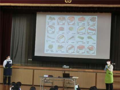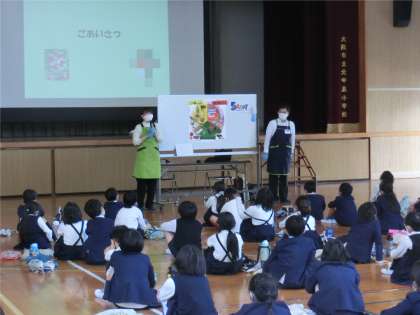 ライフコーポレーションの方に出前授業をしていただきました。赤・黄・緑の食べ物について教えていただいたり、野菜のどの部分を食べているかを当てるクイズをしたりしました。また、お店のバックヤードやお仕事の様子などの映像をみせていただきました。どのような仕組みになっているかを学習することができましたので、スーパーなどに行くときは、学習したことを思い出して買い物をしてみましょう。