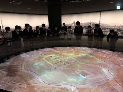 添乗員さんの取り計らいにより平和記念資料館に入館することができました。平和記念資料館の館内では、原爆が落とされた当時の資料や展示などがたくさんありました。児童一人ひとりが原爆の恐ろしさを肌で感じていました。