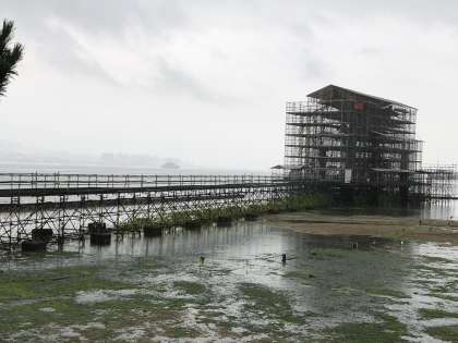 厳島神社に着きました。なんと、70年に一度の工事をしていました。鳥居が見れなくて少し残念でしたが、めったに見られない光景を見ることができました。子どもたちは、世界遺産を前に歴史のスゴさを感じていました。