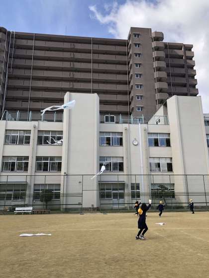 風も程よく吹いて、子どもたちも上手に揚げることができました。