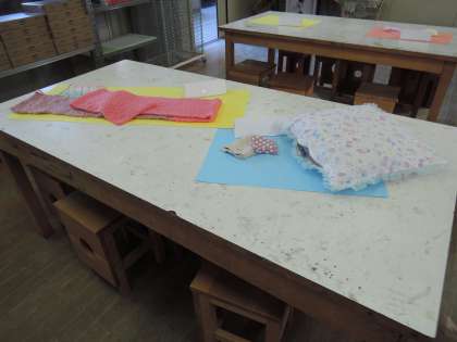 イラストクラブと家庭生活クラブが制作した作品を図工室に展示しました。イラストクラブは、やはり今年流行りの鬼〇のイラストなどを「全集中」で描きました。家庭生活クラブは、クッションや小物入れなどを手縫いやミシンで作りました。どれも、すばらしい作品ばかりでした。