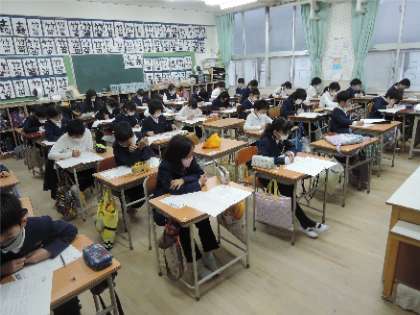 今日から2日間にかけて、学力経年調査があります。今日は2時限目に国語、3時限目に社会を行いました。3年生は初めての学力経年調査です。どの学年も、問題をしっかり読み、落ち着いて取り組んでいました。明日も最後まであきらめずに、問題をよく読んで取り組みましょう。