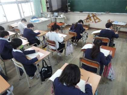 4・5年生の漢字検定は、2時限目に行いました。担任の先生から説明を聞き、自分で選んだ級を受けています。子どもたちは、一問、一問考えながら取り組んでいました。