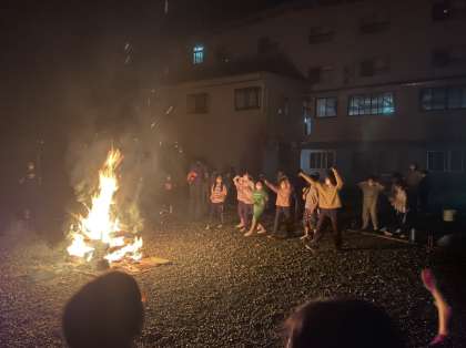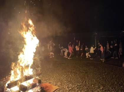 夕食中も降り止まなかった雨が、なんと時間ぎりぎりのところで止み、キャンプファイヤーを行うことができました。楽しい思い出がひとつ増えました。