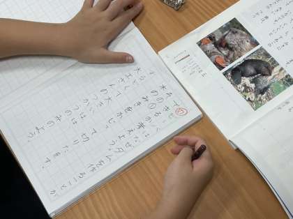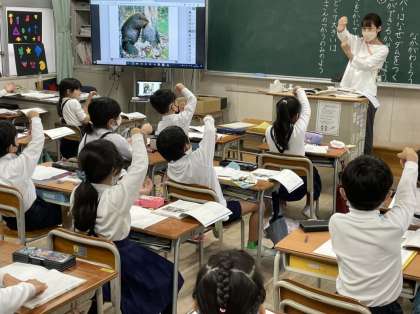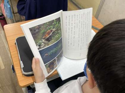 「ビーバーの大工事」の学習です。なぜダムを作ることができるのか、ビーバーの秘密について読み取っていきます。動作化しながらビーバーの様子を理解しました。