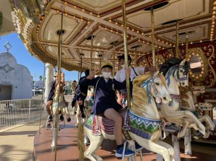 絶好の活動日和です。待ち時間はほとんど無く、いろんなアトラクションで楽しんでいます。