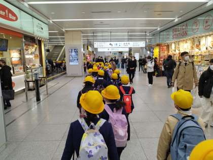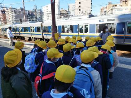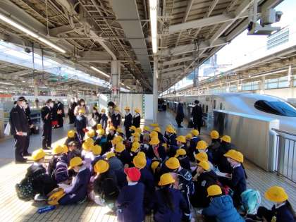1月26日(木)、2年生が乗車体験で、東淀川駅から新大阪まで電車に乗りました。自分たちでお金を払って切符を買い、自動改札機に通して駅に入りました。新大阪駅に着いてからは駅員さんへの質問タイムで、事前に考えてきていたたくさんの質問に答えていただきました。実際に動いている新幹線の側でお話を聞くことができ、子どもたちは一生懸命メモを取っていました。帰りには、ミニノートのお土産までいただきました。