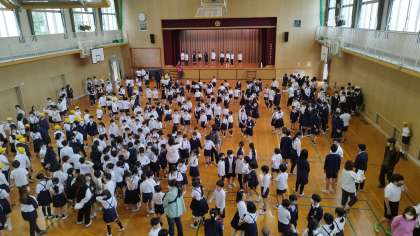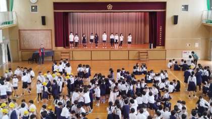 5月25日(木)、児童集会がありました。およそ3年ぶりに講堂で全校児童が集合しました。集会委員会の進行で「もうじゅうがり」という遊びをし、大いに盛り上がりました。