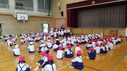 2年生が1年生に学校の教室を教えたり、1年生はスタンプカードにスタンプを押したりと楽しい姿が見られました。