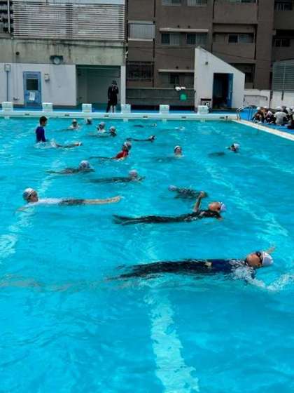 服を着て水の中に入り普段の水着との感覚の違いを感じました。