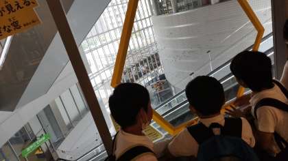 10月24日(火)、4年生が大阪市立科学館へ社会見学に行きました。初めはプラネタリウムです。空一面に星が映し出された瞬間には大きな歓声が上がりました。お弁当を食べた後は、たくさんの展示を見て・触って回りました。間にはサイエンスショーもあり、理科「水のすがた」の学習につながる内容を楽しく見せていただきました。