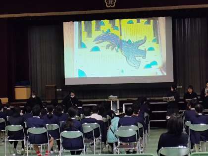 3月8日(金)1時間目、PTA絵本読み聞かせ隊の方々が、6年生へ向けて最後の読み聞かせをしてくださいました。