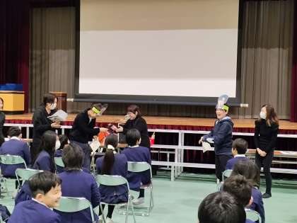 絵本の読み聞かせの後、担任の先生と一緒にゲームをして盛り上がりました。最後には素敵な詩を朗読していただき、最後の読み聞かせ会は静かに幕を閉じました。