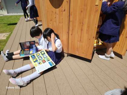 本年度も、図書委員会児童が中心となり、休憩時間に芝生広場で本を読むことのできる「ライブラリーパーク」の開放を行っています。