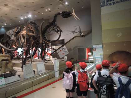 自然史博物館では、普段見ることのできない化石や大阪府で見ることのできる動物や植物などを観察しました。子どもたちは、「うわぁ、すごい!!」や「これ何?」と興味津々で見学をしていました。