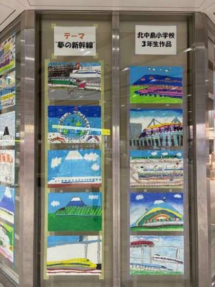 3年生は図工の時間に「JR60周年記念絵画募集」に参加用の新幹線の絵を描きました。みんなとても楽しんで描いていました。10月1日から15日まで全員の絵が新大阪駅中央改札横に展示してもらえることになりました。みんなで描いた「夢の新幹線」はどれも個性豊かで素敵です。