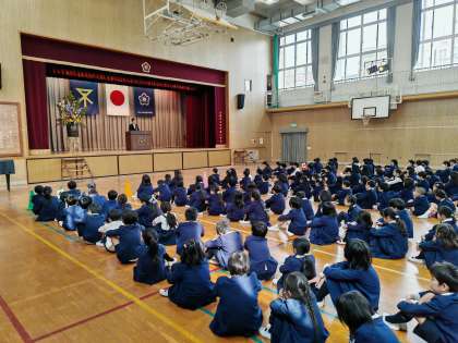 初めに、北中島小学校を去られた教職員、新しく来られた教職員の紹介がありました。その後、校長先生、生活指導の先生の話を聞き、担任の先生や各担当の先生の発表がありました 。始業式が終わってからは、新しい担任の先生と一緒にクラスで過ごしました。