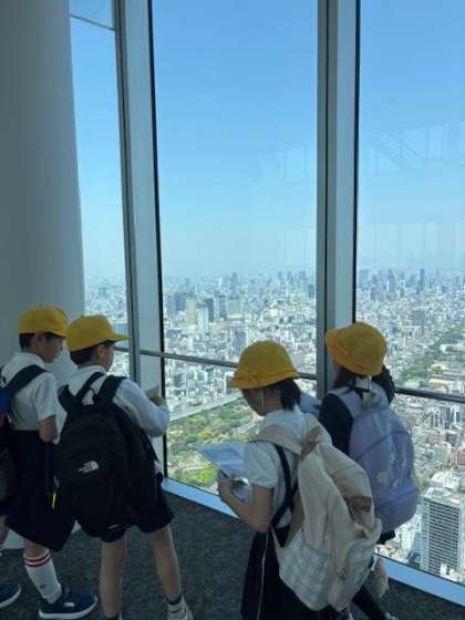 4月30日(水)3年生は春の遠足であべのハルカスへ行きました。3年生から始まった社会科で初めて地図を見る勉強をしています。ハルカスの60階からの景色は素晴らしくて、みんな熱心に見ていました。その後はてんしばでお弁当タイムです。電車のマナーも良く、楽しい遠足となりました。