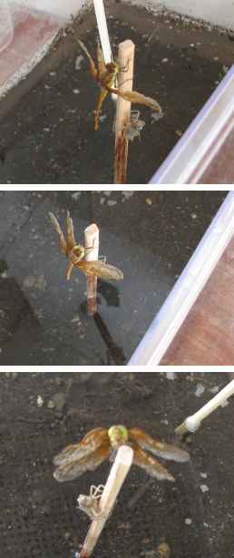 6月のプール清掃の時に捕まえたヤゴが成長し、トンボになりました。