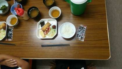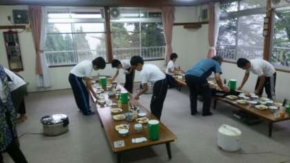 朝のつどいを終え、朝食です。天候をみながら、山登り、飯ごう炊さん、キャンプファイヤー等の取り組みを実施予定です。