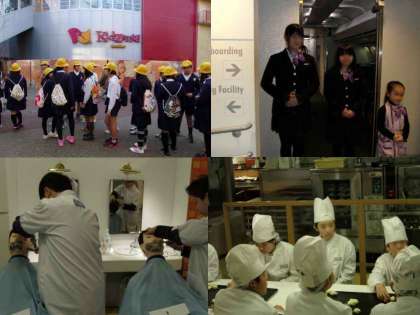 たくさんの職業体験ができるように、朝早くから行きましたが、朝のラッシュアワーに遭い、満員電車の通勤体験もしました。キッザニア甲子園では、ピザ屋、警察官、声優、モデル、消防士、手品師、パイロット、キャビンアテンダント、電車の運転手、パン屋、建設業、お花屋、保険屋、アイスクリーム屋、寿司屋、散髪屋、ガードマン、ダンサー、ガソリンスタンド、自動車屋、助産婦、アナウンサー・・・様々なたくさんの楽しい職業体験ができました。みんなとても嬉しそうでした。将来は、どんな困難な仕事も楽しんでやっていける大人になってほしいものです。