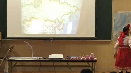 今週は「身近な外国文化に親しむ週間」です。5年生は保護者の方をゲストティーチャーにお招きし、ロシアについて教えていただきました。