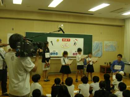 アナウンサーの迫力ある音読に感動しながら、みんなも上手に音読することができました。言葉で伝える楽しさを感じることができる素敵な体験となりました。