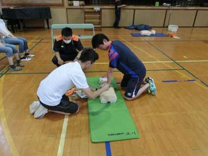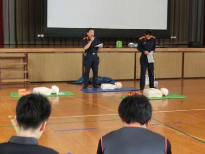 6月27日(水)に消防署の方を講師に迎えて救急救命講習会を開催しました。講習会には保護者と教員が約30名ほど参加しました。