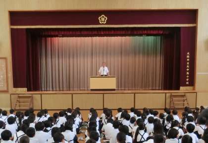 次に、校長先生から、「人を幸せにするには、当たり前のことを当たり前にできるようになりましょう。そうすることでみんなが気持ちよく過ごせます。このことを夏休みに学校外でも心がけましょう。」というお話を聞きました。