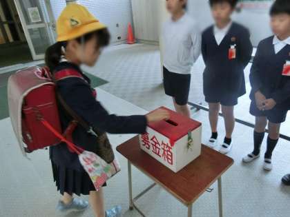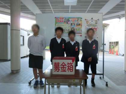 11月5日(月)から9日(金)は北中島小学校の「赤い羽根期間」です。月曜日の朝会で代表委員会の児童が全校児童に募金を呼びかけました。また、この期間は毎日代表委員会の児童がピロティに立ち募金を呼び掛けています。