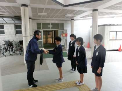 先週は北中島小学校の赤い羽根期間でした。代表委員会の児童が毎日校門に立ち、募金を呼び掛けていました。全校児童や保護者の方のご協力で集まった募金は23675円にもなりました。預かった募金は代表委員会の児童が代表して社会福祉協議会の方にお渡ししました。集まった募金は災害時のボランティアなどに使われます。ご協力ありがとうございました。