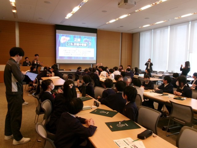 前半は、座学で①錠剤がどう作られているのか?②くすりの正しい使い方③薬物乱用の危険性などについて学ぶことができました。