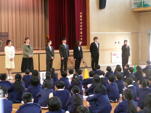 着任式では、10名の新しい教職員を迎えました。子どもたちは新しい出会いにわくわくした様子でした。