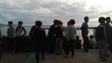 朝会・体操です。夜明けの海岸はすがすがしいです。