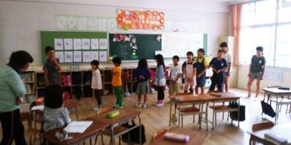 児童集会や秋のオリエンテーリングでは、このたてわり班で活動し、異学年での交流を深めていきます。
