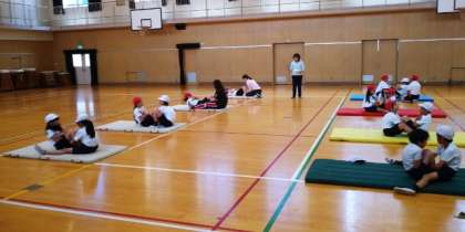 体育館では、4年生が反復横とびと上体おこしを行いました。それぞれ練習した後、本番に臨みました。反復横とびでは、測定の前に滑らないよう靴の裏をぞうきんで拭いて、気合を入れて取り組んでいました。