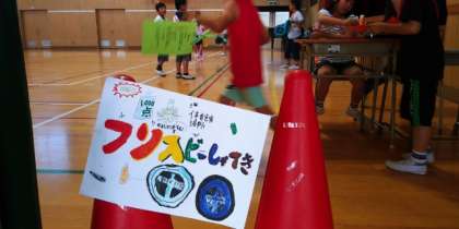 3年生は講堂で「フリスビー射的」でした。ドッジビーで使うフリスビーを投げて、階段状にならんだ的を当てていきます。的をたおすたび、「オー!」「よしっ!」と歓声があがっていました。