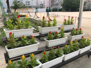 学習園には、管理作業員さんが種から育てたケイトウの花がきれいに咲き始めました。
