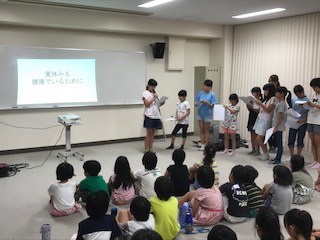 生活指導からは、「いか・の・お・す・し」と熱中症の予防についての話を行いました。
