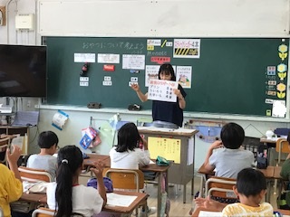 3日(木)3時間目に「おやつについて考えよう」という題材で栄養指導を行っていただきました。