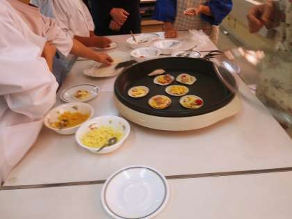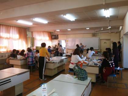 今日の5・6時限目に家庭科室で4年生の親子集会がありました。