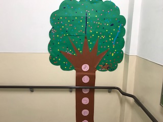 自分から登下校や日常で、すすんであいさつができた児童は、あいさつの木にシールを貼るようにしました。