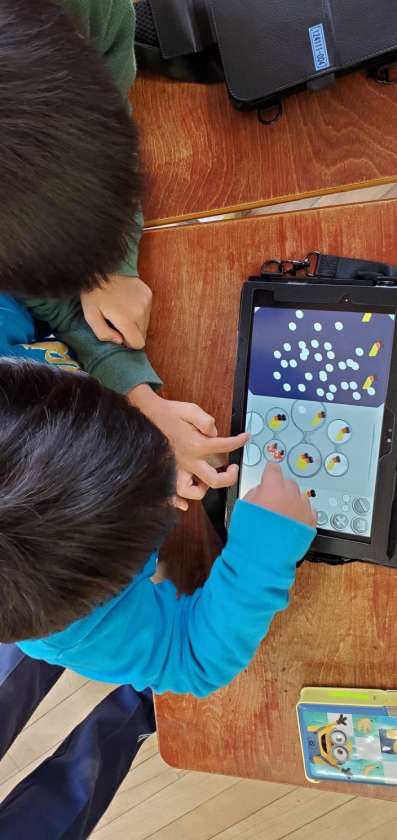 2年生が1年生にアプリの使い方を教えながら、協力して学習に取り組むことができました。自分で設定したものが、思ったように動いていくかを確かめるのが、楽しかったようです。