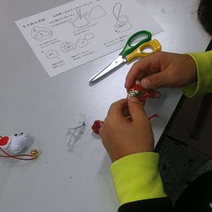 5日(木)の5・6時間目、地域の方をゲストティーチャーとしてお招きし、4年生がストラップ作りに挑戦しました。みんな集中して取り組み、器用に布を貝に巻き付けた後、きれいに飾りをつけていきました。とてもかわいらしい作品がたくさんできました。