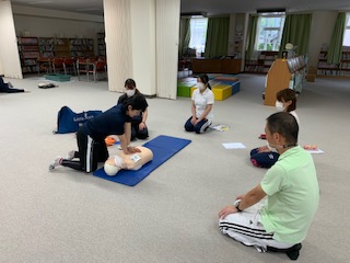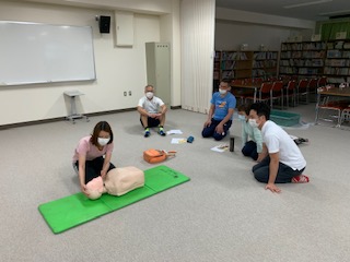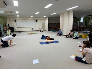 6月3日の放課後に教員を対象に救急救命講習を行いました。消防署から講習用の人形や練習用AEDをお借りして、心肺蘇生法のポイントを確認しました。