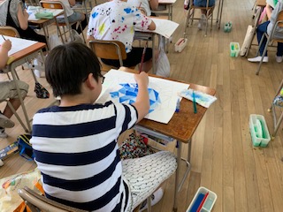 今日はC-NETの先生による外国語の授業がありました。6年生は絵の具でグラデーションを活用した宝石を描きました。1年生は体育で体ほぐしの運動や走ったり跳んだりする運動に取り組みました。それぞれの学年で学習にもしっかりと取り組んでいます。