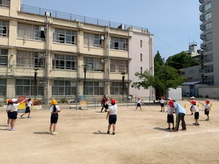 マスクをして運動場で活動をしていると、とても暑く感じられます。外での活動の際は、体育ではマスクを外して十分に距離をとることや、休み時間ではしんどくなる前にマスクを外して呼吸を整えるように声をかけています。