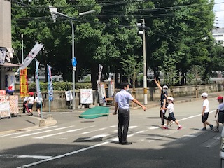 その後、担任引率のもと、信号のある横断歩道、信号のない横断歩道を実際に歩きました。