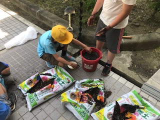 6月11日(木)に理科の学習と並行して、総合的な学習と社会科の学習を兼ねて「バケツ稲」づくりを行いました。種もみを水につけ、様子を見守っていましたが、本日15日(月)、見事に発芽していました。