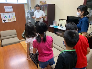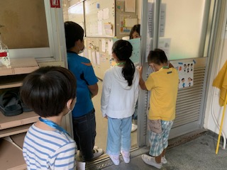 6月19日の1.2時間目に、1年生と2年生の合同学校たんけんがありました。1年生は学校に来てから「ここは何の部屋だろう?」「この階段の先には何があるのかな?」と不思議に思うところがたくさんありました。そんな疑問に2年生が答えながら1年生を案内してくれました。校長室ではクイズがあったり、普段は通らない校舎の上の階に行ったり、ワクワクドキドキの2時間でした。2年生が1年生を上手にリードして、充実した学校たんけんになりました。